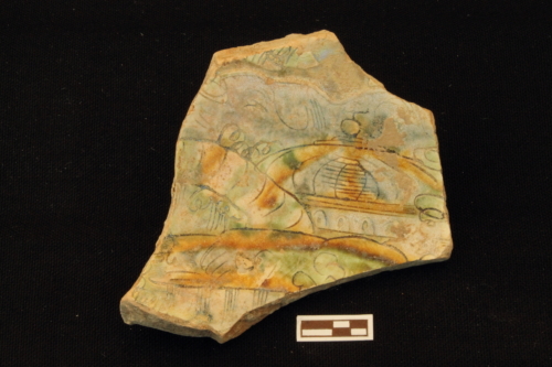ceramica ingobbiata graffita e dipinta sotto vetrina (piatto/ frammento ceramica graffita " a fondo ribassato")