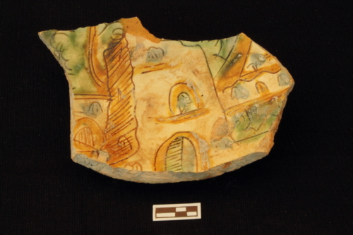 ceramica ingobbiata graffita e dipinta sotto vetrina (piatto/ frammento ceramica graffita "a fondo ribassato")
