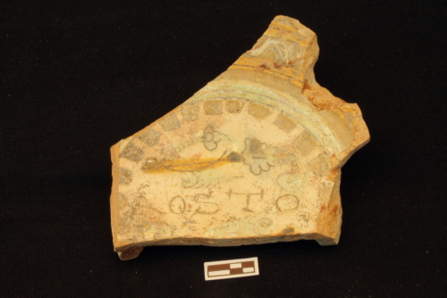 ceramica ingobbiata graffita e dipinta sotto vetrina (piatto/ frammento ceramica graffita " a fondo ribassato")