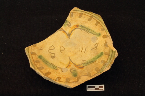 ceramica ingobbiata graffita e dipinta sotto vetrina (piatto/ frammento ceramica graffita " a fondo ribassato")