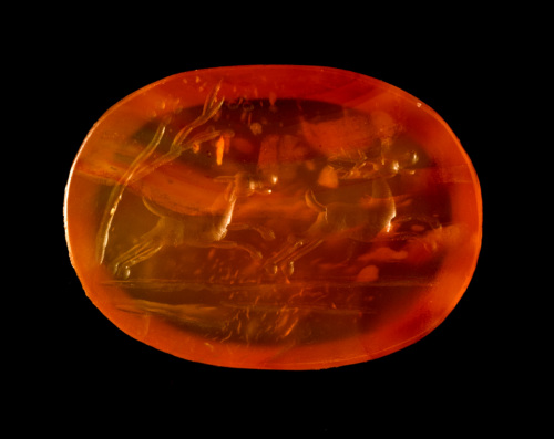 - NOTIZIE STORICO CRITICHE Il tema e la resa stilistica dell'intaglio portano a collocare la datazione del pezzo nell'ambito della prima età imperiale, tra la fine del I secolo a.C. e il I d.C. Un confronto assai pertinente per la sola figura del cervo è costituito da un'agata del museo di Udine, datata verso la metà del I sec.a.C. (Tomaselli 1993, p. 119, n. 257).