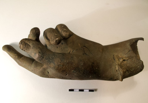 Mano sinistra in bronzo raffigurata nel gesto di benedire. Il pollice el'indice sono tesi, il medio e semiteso, mentre anulare e mignolo sono ripiegati verso il palmo della mano. All'anulare è infilato un anello ovale con incisione simbolica, riproducente un occhio.