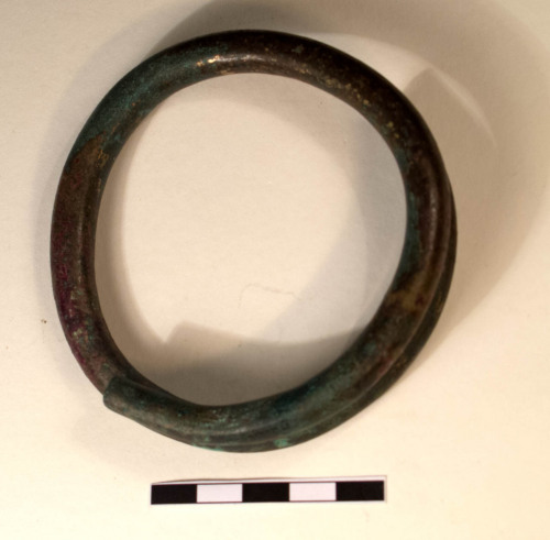 Bracciale (armilla) a capi sovrapposti realizzato in verga di bronzo a sezione circolare. L'intero corpo è a sezione circiolare. Il diametro della verga si assottiglia verso i capi. I capi sono sovrapposti per più di un terzo della circonferenza.