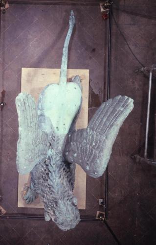 Peso: quasi 28 quintali (comprese le piastre interne di bronzo di rinforzo e il cemento che riempie le zambe fino al corpo) cm.
