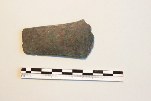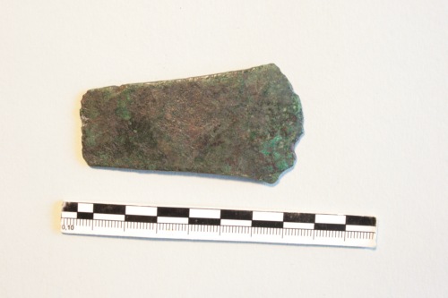 Accetta in rame (presenta una patina verde chiaro), con lamina a margini sbparalleli, taglio scampanato (ora molto sfrangiato) e tallone rettilineo. Il tipo di ascia piatta, prevalentemente di piccole dimensioni, è diffuso in gran parte d'Europa e in Italia durante l'Eneolitico. In particolare l'ascia di Torcello trova confronto in esemplari della seconda metà del III millennio dal Veneto e dal vicino Friuli.