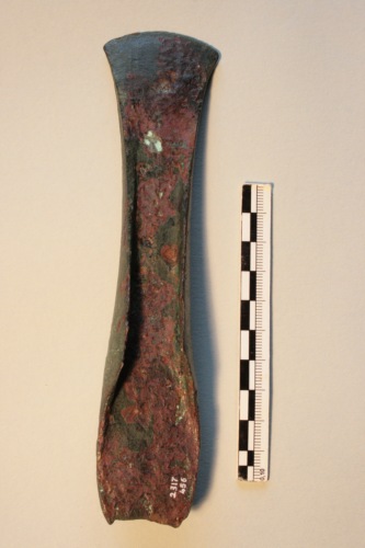 Ascia ad alette tipo Silea. L'ascia presenta una lama con alette molto sviluppate ed angolate superiormente, taglio espanso, tallone con incavo lievemente semicircolare ed apici ricurvi appena accennati. Si tratta di una foggia largamente diffusa in Italia settentrionale e lungo il versante adriatico durante l'età del bronzo finale. L'ascia di Torcello trova specifici confronti con numerosi esemplari dal Veneto centro-orientale e dal vicino Friuli. L'elevato numero di esemplari rinvenuti nei dintorni di Treviso consentirebbe di ipotizzare l'esistenza di un'officina metallurgica attiva tra l'XI e il X secolo a.C.da cui potrebbe provenire la stessa ascia di Torcello. La superficie presenta una patina di colore verde chiaro.