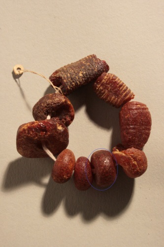 Perla di forma globulare schiacciata non ascrivibile ad un tipo specifico e ad un preciso periodo cronologico.