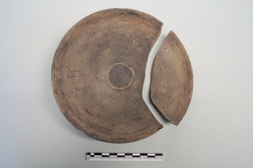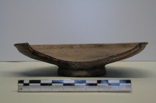 Piattello a vernice nera in argilla beige chiarissima e vernice nera opaca tendente al bruno. La vasca del piattello è bassa e larga; le pareti sono troncoconiche molto spesse verso il centro della vasca e più sottili verso il breve orlo leggermente esoverso; piedino ad anello a profilo troncoconico. Al centro della vasca vi sono due orlini rilevati concentrici, di cui quello esterno è più marcato. Il fondo e la base d'appoggio sono a risparmio. Questa forma è comune in ambiente greco già dal secondo quarto del IV alla metà del II secolo a.C. circa; la forma si diffonde poi nella ceramica italica a vernice nera. L'esemplare di Torcello ha un profilo estremamente essenziale, disegno proporzionato e corretto e reca come decoro un doppio cordoncino rilevato al centro della vasca.