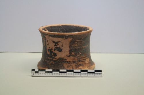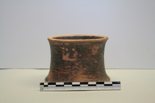 "Saliera" a vernice nera in argilla beige chiaro e vernice bruno scuro opaco. Il vaso presenta una coppa profonda con profilo esterno e curva concava continua dall'orlo superiore al breve orlo del piede ad anello. Il piede ha breve base d'appoggio e ampia superficie interna piatta. Sono visibili sulle pareti i segni dello strumento. La vernice nera è screpolata in più punti. La forma è quella delle saliere attiche a pareti concave, mantenutasi intatta dal V al IV secolo a.C.; si diffonde nel IV secolo a.C. anche in Occidente. Il vasetto di Torcello trova numerosissimi confronti sia in ambiente etrusco che nella Valle Padana, in particolare Adria.