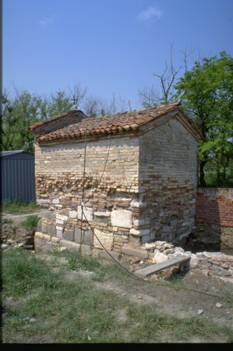 edificio di forma rettangolare, pareti in mattoni faccia a vista con la presenza nella parte inferiore di grosse pietre disposte irregolarmente; copertura a tetto in coppi; porta dingresso sormontata da lunetta; la facciata presenta una forma a frontone ed è sopraelevata rispetto alla copertura delledificio