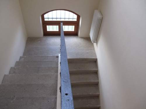 edificio a pianta rettangolare a due piani con murature continue in laterizio a vista con forometria seriale arcuata con balconi in legni, copertura a quattro falde in coppi di laterizio.