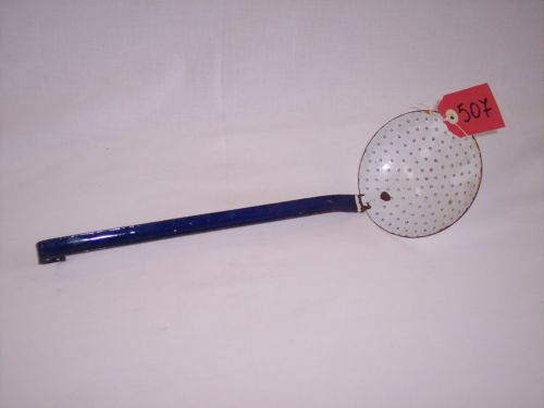 utensile costituito da un lungo manico con un'estremità curva verso lesterno mentre all'altra è saldato un disco di lamiera smaltata coperto di numerosi piccoli fori e modellato allinterno a calotta.