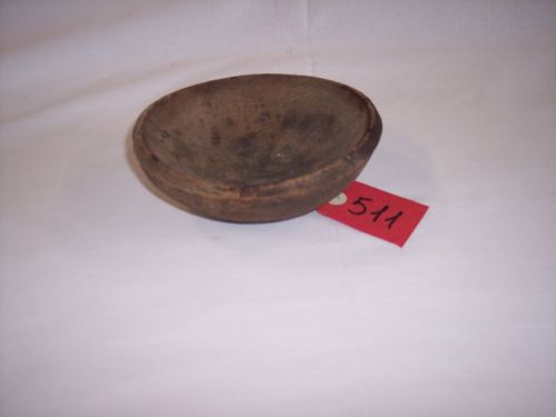 contenitore in legno concavo di forma semicircolare con bordo a sezione rettangolare estroflesso, con piede circolare