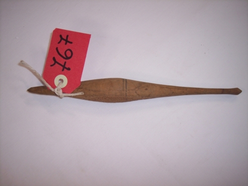oggetto in legno tornito, a sezione rotonda, panciuto nel mezzo, si assottiglia gradatamente alle estremità