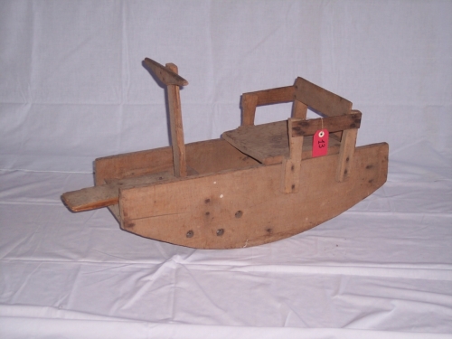 oggetto mistilineo in legno costituito da due montanti arcuati uniti verticalmente da traverse in modo da formare una specie di dondolo e da un piccolo seggiolino con schienale e braccioli collocato ad un'estremità, mentre dall'altra da una semplice tavoletta di legno rettangolare posta orizzontalmente, fungente da secondo sedile, quasi al centro è fissato verticalmente una specie di manubrio fatto a T