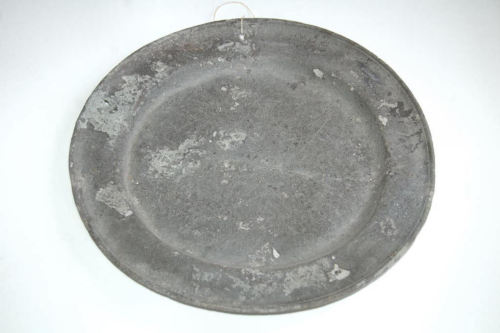 basso recipiente di forma circolare con bordo leggermente svasato e spigolo arrotondato; in peltro