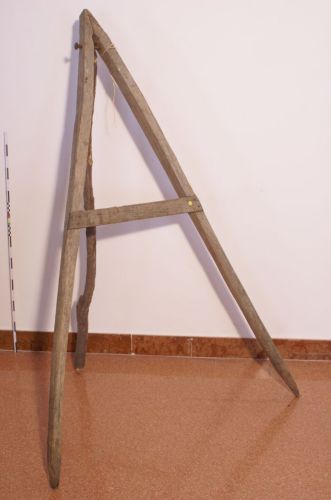 - FUNZIONE E MODALITÀ D'USO appoggia gerlaquesto cavalletto mobile permetteva di riempire la gerla tenendola alzata dal terreno, posata sull'assicella trasversa, in modo da facilitare l'operazione di caricarsela sulle spalle