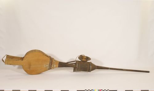- FUNZIONE E MODALITÀ D'USO irrorare le viti con solfati ed altri composti antiparassitariposta nell'apposita ampolla la miscela di zolfo, azionando il mantice aprendo e chiudendo i piatti di legno impugnati per le due manopole, si insufflava il composto sui filari di viti