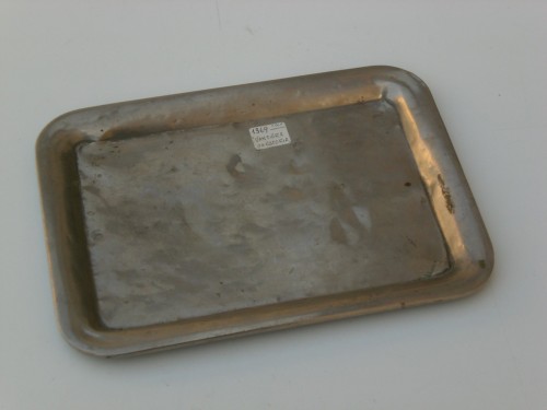 Piccolo utensile rettangolare in alpacca color argento dai bordi e dagli angoli arrotondati. Probabilmente utilizzato nelle osterie.