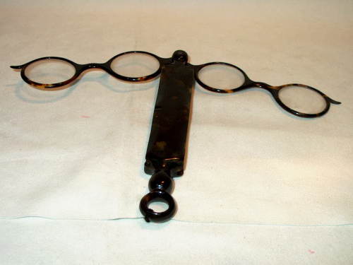 con manico-supporto-astuccio in tartaruga, contiene due paia di occhiali con lente tonda