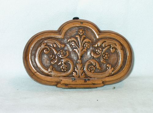 L'astuccio, per occhiali ad arco, è costruito in legno di bosso è di forma trilobata, completamente traforato e intagliato. Sulla parte superiore è intagliato un profilo contornato da animali e tralci. Sulla parte opposta sono intagliati tralci e animali.