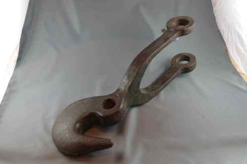 Pesante gancio da cantiere, simile nella forma a quelli montati sui rimorchiatori. Munito di foro per l'inserimento del perno che fungeva da fulcro, si biforca in due staffe simmetriche fornite di occhio per il fissaggio.