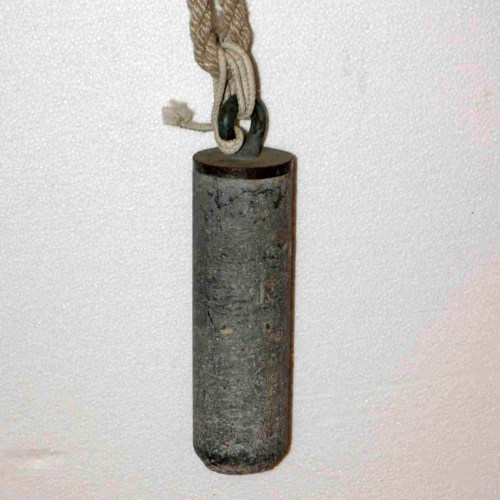 Scandaglio cilindrico munito alla base superiore di un occhiello per poterlo legare a una corda o fissare a una catena.