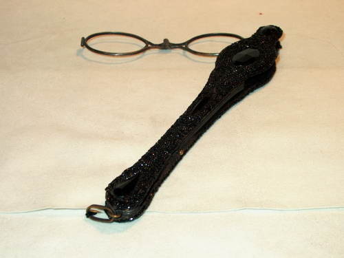 Fassamano in ottone a impugnatura lunga. L'impugnatura è ricoperta di piccole pietre di marcassite con al centro quattro pietre più grandi per parte. [Descrizione estratta dal database del Museo dell'Occhiale.]