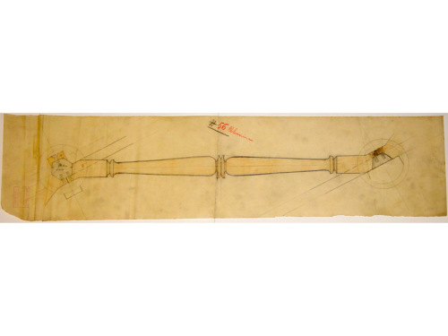 Il foglio mostra lo studio di una colonnina per ringhiera con particolare riferimento alla posizione e all'inserimento delle viti.