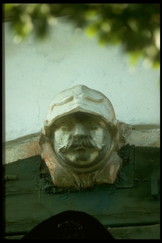 Testa d'uomo baffuto con elmo