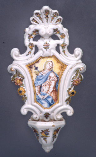 acquasantiera da parete per uso domestico; decoro policromo
