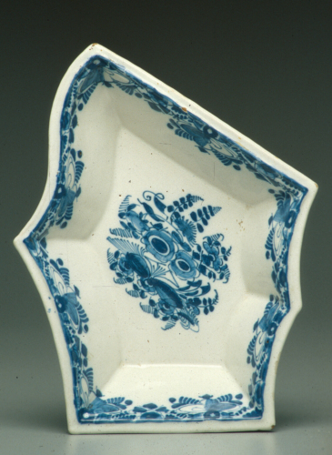 elemento di rysttafelstel (antipastiera) a orlo mistilineo; decoro in monocromia blu