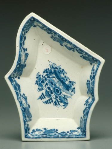 elemento di rysttafelstel a orlo mistilineo; decoro in monocromia blu