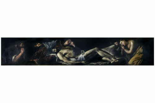 Cristo morto con la Madonna, due figure piangenti e un angelo