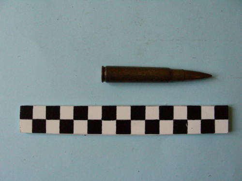 Di forma cilindrica, con fondello e restringimento all'apice del bossolo e proiettile conico.