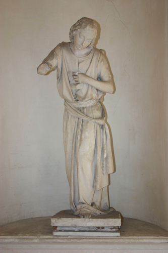 - NOTIZIE STORICO CRITICHE La presenza degli agganci per le ali e della lettera (o spartito musicale), che la giovane regge nella mano destra, sembra alludere a una figura allegoria. In questo senso la Guida della villa del 1926 rivela la presenza nelle collezioni di un gesso di Emilio Marsili (Venezia 1841-1926)intolato "L'Ispirazione".