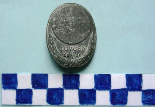 - ISCRIZIONI sul recto, tra i rami di alloro - LOVCEN 19 11/1 16 - caratteri alfanumerici - in rilievo - montenegrino