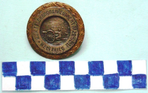 - ISCRIZIONI sul recto, lungo la corona centrale - K.u.K. FELDKANONENREGIMENT N°29 - caratteri alfanumerici - a incisione - Tedesco