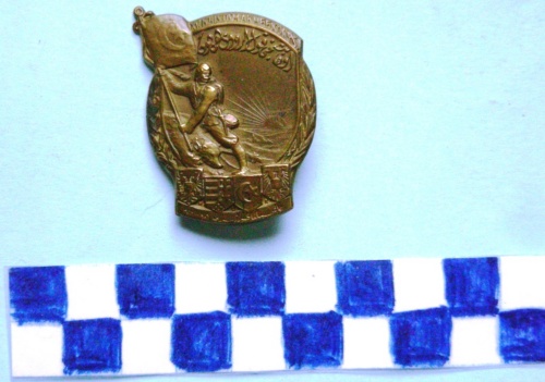 A forma di disco con sottostanti quattro stemmi araldici dell'Austria, Ungheria, Turchia e Germania e cartiglio con iscrizioni a caratteri arabi.Il disco è circondato ai lati da frode d'alloro e di palma. Al centro, in rilievo un soldato con elmo e baionetta che sventola una bandiera con la mezzaluna e la stella, sotto l'asta della bandiera un orso disteso. In secondo piano a destra un sole radiante dietro una moschea. Nella parte superiore un'iscrizione a caratteri arabi. Sul verso spilla di fissaggio ed iscrizione.