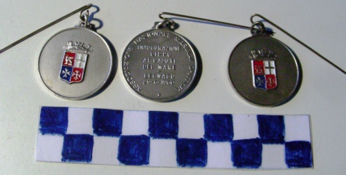 Di forma circolare. Sul recto, al centro, in rilievo, scudo francese coronato quadripartitio, con i simboli delle Repubbliche marinare. Sul verso, iscrizioni sulla corona ed al centro. Anello all'appiccagnolo con spilla di fissaggio.