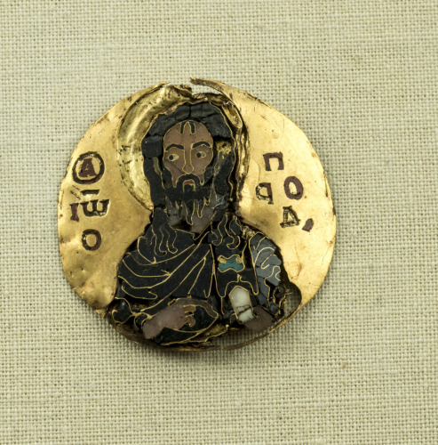 - ISCRIZIONI ai lati del santo - ΟΑ ΙΩ O ΠPOΔ - maiuscoli - a smalto - greco