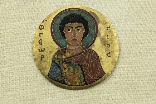 - ISCRIZIONI ai lati del santo - Ο Α ΓΕΩΡΓIΟC - maiuscoli - a smalto - greco