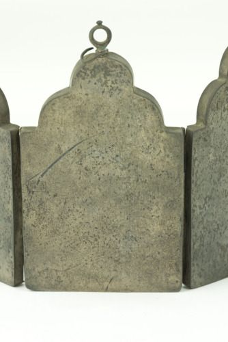 - NOTIZIE STORICO CRITICHE Entrato nel Tesoro nel 1958. Piccole icone erano generalmente confezionate in serie nei conventi del Monte Athos e in altri monasteri ortodossi dal Medioevo ad oggi. Per la loro coerenza iconografica e tecnica sono spesso di difficile datazione, ma lo studio di Hahnloser (1971) colloca questo trittico, se pur in forma ipotetica, nel XVIII secolo per alcuni dettagli stilistici