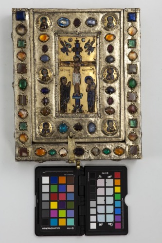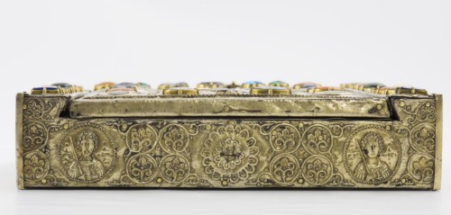 - NOTIZIE STORICO CRITICHE Il reliquiario è ricordato nell'inventario del 1325, mentre non compare in quello del 1283. La datazione non è certa: nei vari studi oscilla tra IX e XIII secolo. Si rifà forse ad un più antico modello paleocristiano, come la cassetta in cui si custodiva la vera Croce conservata presso il santuario del Santo Sepolcro a Gerusalemme. La serratura è di epoca più tarda