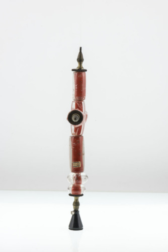 Croce con montatura di bronzo, costituita da sette elementi in cristallo di rocca molati e lisci, con foro passante. Al centro si colloca un elemento quadrato e lungo i bracci altri quattro elementi, due laterali che presentano delle sfaccettature a sei lati, gli altri due subcilindrici. Nel braccio inferiore si trovano due ulteriori elementi terminali ad anello