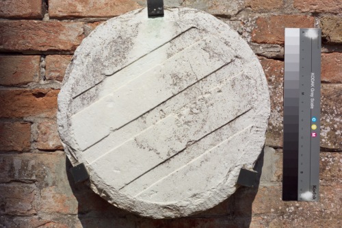 tondo in pietra d'Istria raffigurante lo stemma di una famiglia veneziana.