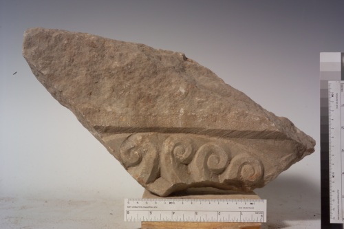 - NOTIZIE STORICO CRITICHE il pezzo fu rinvenuto nel 1974 in occasione di uno scavo per il rifacimento del pavimento al piano terra del Palazzo del Consiglio. Il pezzo similmente al n. 1195 del museo stesso presenta un arco definito dai cani correnti.