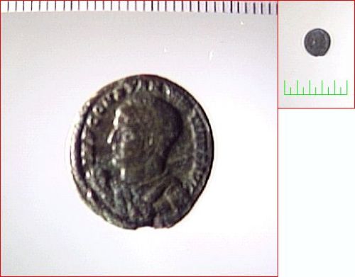 Dritto: IMP.CONSTANTINVS AVG.;testa di Costantino a s.,con elmo e alta cresta;con la mano d.tiene una lancia,rivolta a d.e passante dietro le spalle.. Rovescio: VICTORIAE LAETAE PRINC.PER P.;due Vittorie una di fronte all'altra con uno scudo, su altare, recante la legenda VOT.PR.; esergo, ASIS