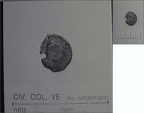 Dritto: [---]; testa laureata di Gordiano III (?) a d.. Rovescio: [---]; figura maschile seduta a s.