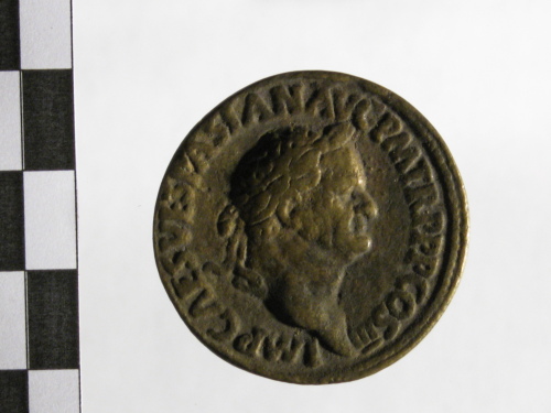 Dritto: busto laureato di Vespasiano a s.. Rovescio: Colosseo con simboli ai lati